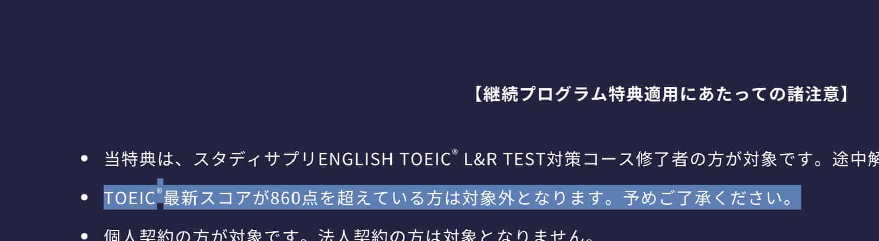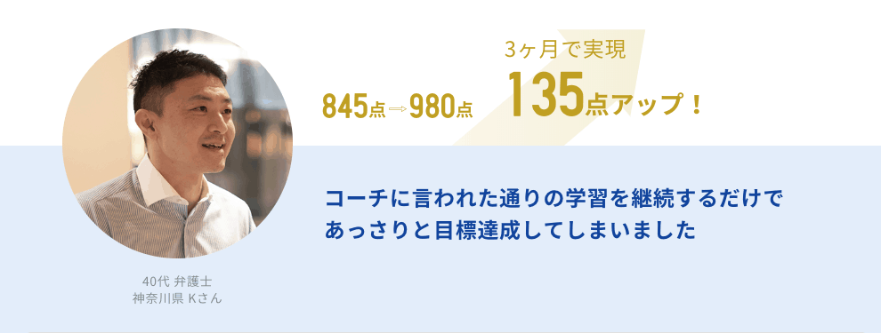 ↓実はパーソナルコーチプランでの特訓を経て、僕のスコアは860点以上になったのでギリギリ対象外となってしまうんです。